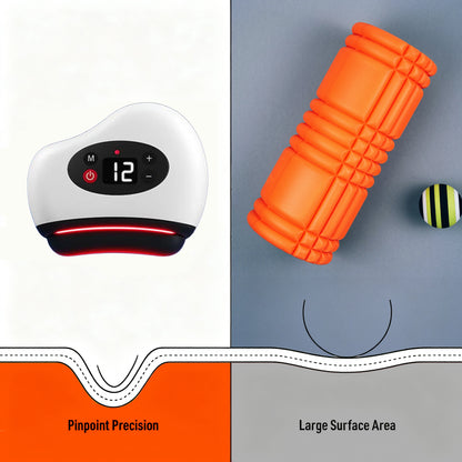 Profesyonel terapistler bu kombinasyonu onlarca yıldır kullanıyor. Isı kan akışını artırır, titreşim skar dokusunu parçalar ve hedefli basınç tetik noktaları serbest bırakır. Artık aynı kanıtlanmış metodolojiyi evinizde, maliyetin çok daha düşüğüne erişebilirsiniz.
